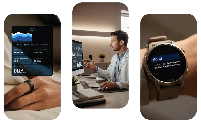 • Tus wearables detectan. Escuchamos a tu cuerpo a través de tus dispositivos, traduciendo datos en información clara.